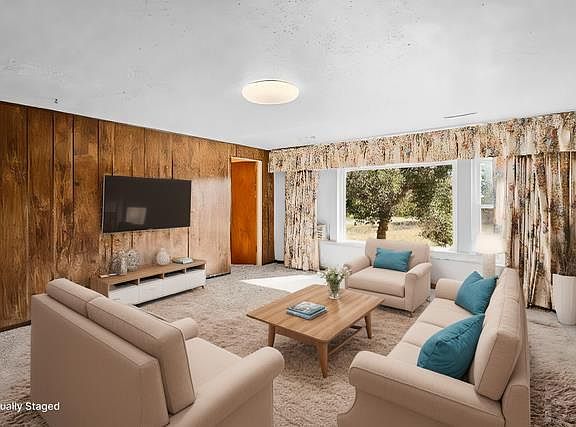 This versatile single-family home, with accessory dwelling units, presents a unique opportunity for both living and investment. Featuring two 2-bedroom units in the basement, each with private entrances and yard areas, this property allows for various living arrangements, whether renting out the basement or accommodating family members. Set on 6.1 acres, the home includes a spacious main living area with 3 bedrooms, 2 bathrooms, and two large living rooms, complemented by a fully enclosed deck off the kitchen. Recent upgrades include newer carpet throughout most of the home and a new electrical service, Additional highlights include a bomb shelter in one basement unit. An outdoor built-in fireplace on the front deck, and mature trees that enhance the property's inviting atmosphere. All situated on 6.1 acres. Conveniently located just off Highway 50, this home offers easy access to town while providing a serene country lifestyle. This property allows horses. There is plenty of room for out buildings, a barn, and horse corral. Got An RV or three? Plenty of room for those as well! Some photos are virtually staged.