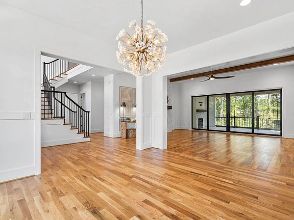 This 6,807 SF Poythress Construction masterpiece in Montvale at Copperleaf offers luxury living in a prime Cary location, minutes to RTP, RDU Airport, top schools, shopping, dining, and entertainment. A dramatic 2-story foyer with a sweeping staircase sets the tone, leading to the great room with a sleek linear gas fireplace, spacious dining, breakfast area, and beverage bar with wine cooler. The chef's kitchen boasts custom cabinetry, marble herringbone backsplash, oversized island, Wolf 8-burner double oven range, and built-in Sub-Zero refrigerator, plus a hidden scullery with 2nd full kitchen and abundant storage. A mudroom, secondary staircase, study, powder room, and guest suite with ensuite bath complete the main level. Upstairs find a luxurious primary suite with spa bath and custom closet, along with 3 bedrooms each with private baths and a loft. The finished basement expands the living space with a 3rd kitchen, bar with wine fridge, theatre, bedroom, bath, storage, and covered walk-out patio. Outdoor living shines with a screened porch and fireplace, patio, wide fenced backyard (pool-ready), garden beds, solar panels, and direct access to the American Tobacco Trail. 3-car garage. 6 BR, 6.5 BA.