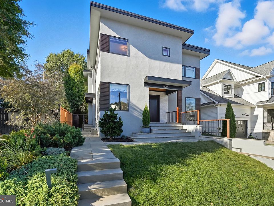 Stunning modern masterpiece designed by acclaimed Moser Architects, this home seamlessly blends cutting-edge design with refined comfort. Nestled in the highly sought-after Lyon Village, it showcases a light-filled, open layout that exudes both sophistication and warmth. Every detail reflects the vision of the current owner, a talented interior designer, who curated and professionally finished the interiors with an elevated sense of style. >>> Upon entry, soaring ceilings, white oak flooring, and Italian lighting by Artemide set the tone for the home’s contemporary elegance. The striking dining room features Schumacher wallpaper, custom cabinetry, and Scandinavian lighting by Louis Poulsen. A gorgeous, dedicated home office with custom built-ins complements the design. Along the inner hall, a custom mural by NYC’s Calico Wallpaper leads to the mudroom and powder room, both beautifully finished with designer wallcoverings. The open-concept living area, wrapped in walls of windows, is centered around a state-of-the-art kitchen by Jack Rosen Custom Kitchens, featuring Canadian Elmwood cabinetry and Dekton countertops, a walk-in pantry, butler’s pantry with beverage center, and a custom banquette upholstered in Christopher Farr Cloth. >>> Upstairs, the primary suite includes two custom-designed walk-in closets and a luxurious spa-inspired bath with an oversized shower and bench seating. Three additional bedrooms, two full baths—one showcasing a Scandinavian light fixture by &Tradition—and a convenient laundry room complete the upper level. >>> The lower-level recreation room with 10-foot ceilings offers an ideal space for relaxation and exercise. A guest bedroom with full bath and second laundry room complete this level, with direct access to the attached garage. >>> Outside, professional landscaping, flagstone walkways, and a private patio provide a serene backdrop for outdoor entertaining or play. Perfectly situated on a picturesque street just two blocks from Clarendon Metro, shops, and dining.