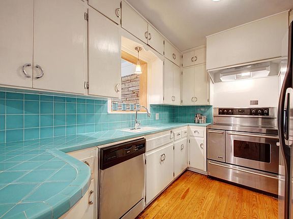 Clean, sleek mid century modern charmer with vintage touches and modern upgrades. 4 BR/2 BA with hardwood and tile (No carpets), 2 car carport, fantastic wood burning fireplace in Master Suite (which could be used as a second entertainment/living space), along with dual head shower stall. Gorgeous indoor porch area that easily bridges between indoor living & the spacious back yard with new privacy fencing. The back yard provides an incredible entertaining space, perfect for gatherings.