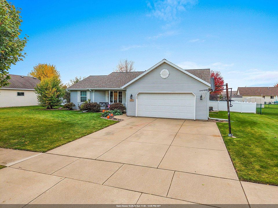 This spacious and bright 3 Bedroom Ranch style home in desirable West De Pere area is just waiting for you! There is something for everyone here, with 2400+ sqft this home has a split bedroom design, an inviting living room with raised ceiling and gas fireplace, nice architecture, a spacious kitchen with great cabinet and counter space, and a bright dining area with patio doors leading to a deck & fenced in backyard. Enter the lower level off the kitchen through the rolling decorative barn style door. This huge family room in the lower level offers space for everyone, with a half bath, separate space for a game room and additional den or office space. The laundry on the main floor is equipped with a laundry basin and ample counter space. The roof has been replaced along w/ some windows.