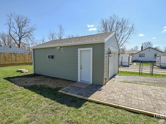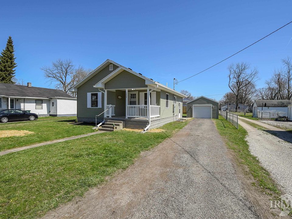 This home has been completely renovated from the studs. Lots of brand new throughout including, new electrical, new plumbing, new hvac - gas furnace and central air, new roof, new windows, new exterior and interior doors, new vinyl siding, new kitchen, new bathroom, lights and more! As you enter the home you will be greeted to the open concept living room and eat-in kitchen. The kitchen features a custom tiled backsplash and will include appliances brand new dishwasher, microwave, electric range and lightly used refrigerator. The living room includes beautiful trim and woodwork and recessed lighting. Ceiling fans with remotes have been installed in all bedrooms and living room. The beautiful bathroom features a custom tiled tub surround, shiplap and built-in storage area. The three bedrooms have brand new carpet. Downstairs in the basement is an extra area for storage and includes hook ups for the washer and dryer. Outside you will enjoy sitting out on the front covered porch and vinyl railings. The backyard features pavers from the house to the 1 car detached garage. Spacious backyard. Storm doors have been installed on front and side doors. Just 1 block from access to the Cardinal Greenway!