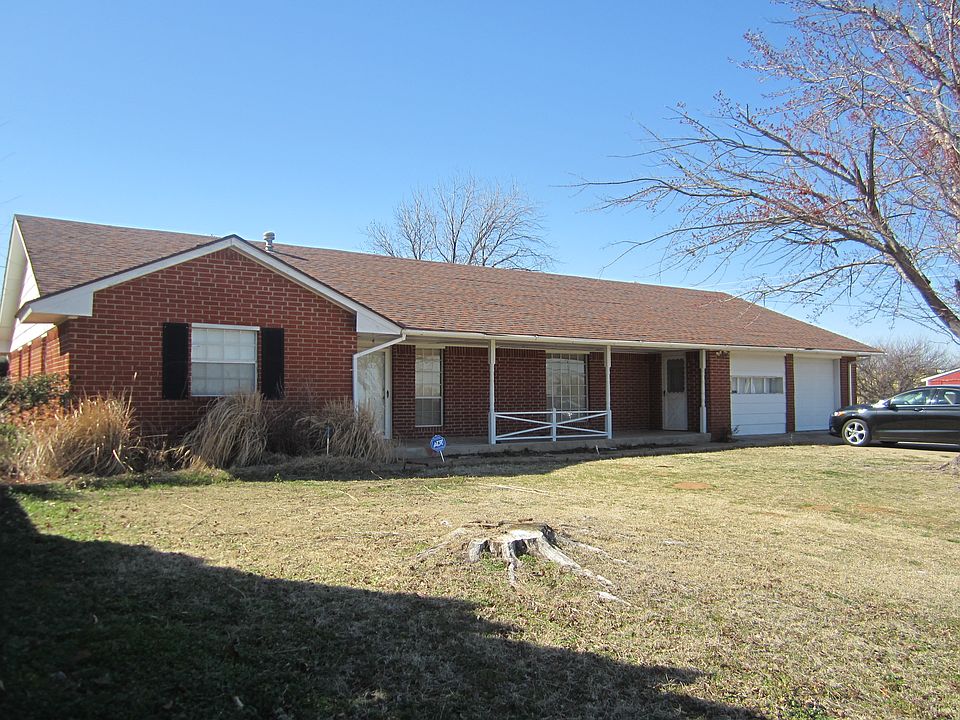 This 3 bed 2 bath brick home sits on 3 large corner lots in close access to Mission Elementary, Anadarko Middle School and Anadarko High School. It boast a 1 car attached garage along with a great bonus room that would make a convenient office or work out space. Entry way opens into spacious living area, that leads into a dining area off of kitchen. A large laundry/utility room is another great feature. Fenced in back yard, covered porch, storage shed, pecan trees and plenty of parking are also included.