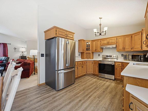 Beautiful upgraded home in a great Sauk Rapids cul de sac neighborhood! This home features four bedrooms, two full baths with granite countertops, spacious and open rooms, circle top window and vaults in the living room, and a great view out the front window. The kitchen has new Quartz countertops, new stainless steel appliances and new vinyl plank flooring. The lower level has a wonderful family room with a cozy gas stone fireplace and nice built ins. The yard is pie shaped, has mature trees, landscaping, a deck and lots of privacy. Other recent updates include: roof, gutters, insulated wraparound garage doors, Lennox furnace and central air in 2018, water heater in 2021, cement driveway in 2019, new plumbing and faucets in the bathrooms, new Anderson front and patio doors, along with new kitchen window. Great neighborhood including a one-mile walking/bike path with ponds, ducks and mature trees. Path is at the end of the cul de sac.