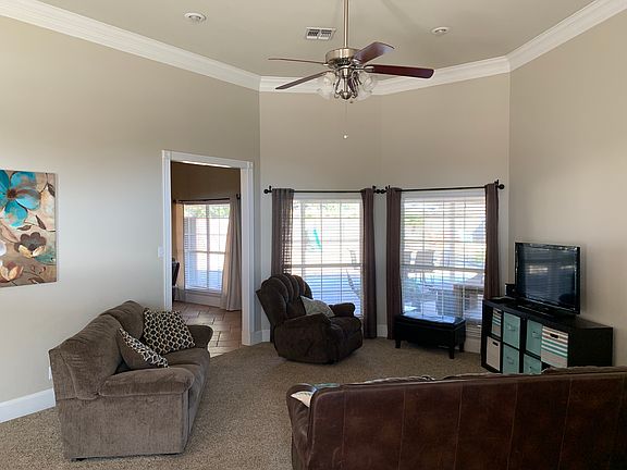 Beautiful home in a sought after Country Club Lake Estates! Enjoy the high ceilings, open floor plan, and split bedrooms! Home has two separate living areas and a very large kitchen. Backyard and patio are perfect for entertaining! Three separate doors exit from the house onto the large patio. Large custom salt water pool is just steps away! Fenced in separately with a locked gate for added security. Perfect for entertaining. CCLE HOA includes access to the Concho river with 2 separate boat docks and a boat ramp. There is also easy access to San Angelo Country Club golf course. Please call Heather at 785-479-0004 to set up a time to see this house!