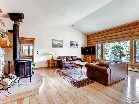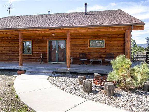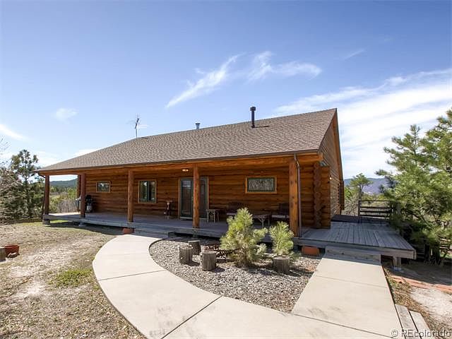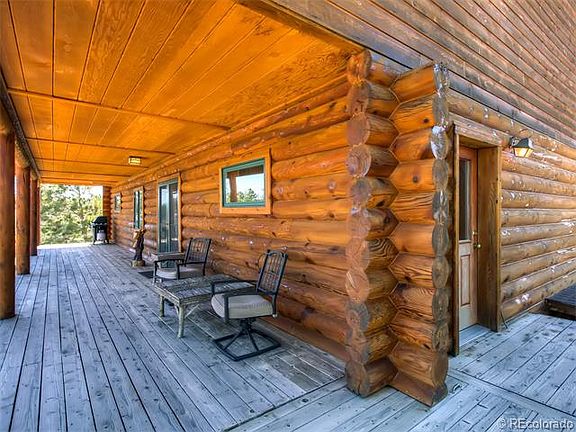 Perfectly situated custom log home with 6 acres in Perry Park East. Relax & enjoy this gorgeous home-site from your large deck across the back of the home. Wonderful ranch living features great room with wood stove & bookshelves. Large kitchen & nook with pine cabinets, solid surface tops, gas stove & large island. Perfect master suite with private bath & walk-in closet. 2nd bedroom on the main doubles as a study. Convenient mudroom laundry room off the kitchen plus powder bath. Fin. walk out lower level rec room, 3 more large bdrms & full bath. Even the dogs have their own room with cabinets & sink that opens to an enclosed dog run. The rear yard is a playground with trampoline, playground set & zip line plus it is partially fenced. Large 4 car garage plus another outbuilding perfect for storing all of the toys. Central vacuum system. City water. Feels like you are living in your own mountain lodge that is a short distance to I-25 & town. Over 4000 sq. ft. fin. with 5 beds & 3 baths.