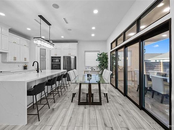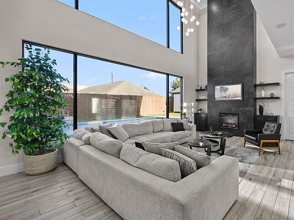 This elegant home, featuring 4 spacious bedrooms and a thoughtfully designed theater room ideal for both relaxation and entertaining. With 3 full bathrooms this residence ensures ample space and privacy. The open layout seamlessly connects the kitchen to the spacious living room, perfect for hosting gatherings or enjoying family time. The gourmet kitchen is a true showpiece, outfitted with high-end appliances, generous counter space, and custom cabinetry that beautifully merges style with functionality. The principal suite offers a private retreat, featuring dual vanities, a separate showering and a large walk-in closet for all your storage needs. Each additional bedroom is generously sized and can easily accommodate family. The large windows throughout the home flood each room with natural light, enhancing the warm and inviting atmosphere. Step outside to a beautifully covered patio, a pool and landscaped yard, perfect for outdoor entertaining or simply relaxing in the fresh air.