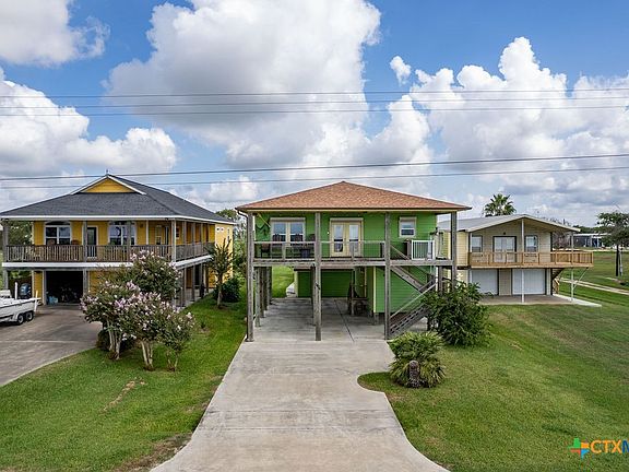 Enjoy stunning sunrises and cool bay breezes from this water view retreat with unobstructed San Antonio Bay views! The upstairs features an open-concept living, dining, and kitchen area with granite countertops, stainless steel appliances, and double French doors leading to a covered deck. The primary suite, primary full bathroom and guest half bath are on the main level. Downstairs offers a complete mother-in-law suite with its own kitchen, living room, bedroom, full bathroom, and laundry - perfect for guest or rental income. All windows and doors have electric storm shutters! Storage building for extra place to store your items or make a man-cave! Still a grass yard in back for your children or animals! Additional highlights include a 1,000-lb lift and prime location within walking distance to the city pier and bayfront!