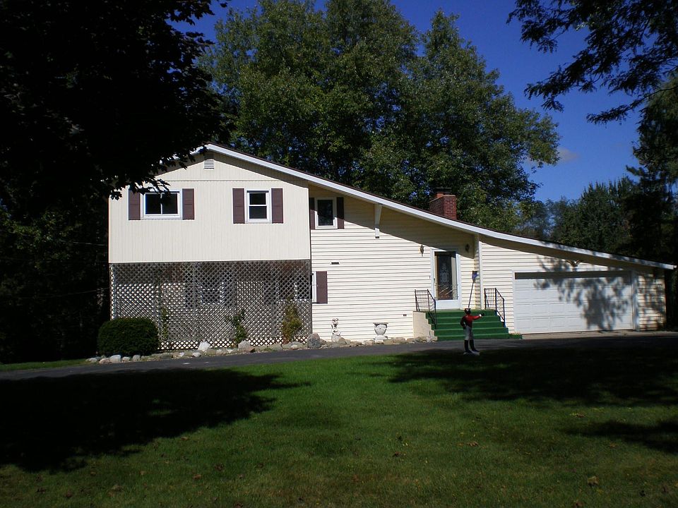 Beautiful 1.78 acres on Looking Glass River Dewitt. Circle drive and front pine trees for privacy. Multi-level home offers lots of living space. Formal living room has window wall for river views, stone wall with fireplace, cathedral ceiling and new carpet. Open kitchen and dining room also views river, features stain glass accents, door to 23'x13' deck and new carpet. first floor master has own bath and oak floors. Unique second floor balcony overlooks living room and leads to two good size bedrooms with oak floors and large closets. 2nd foor also has full bath with double sinks. Full finished walk-out bsement features family area, office, 4th bedroom, canning kitchen and 3rd bathroom. also included is 2.5 car attached garage, 24'x18' 2 story barn with concret floor and electricity.