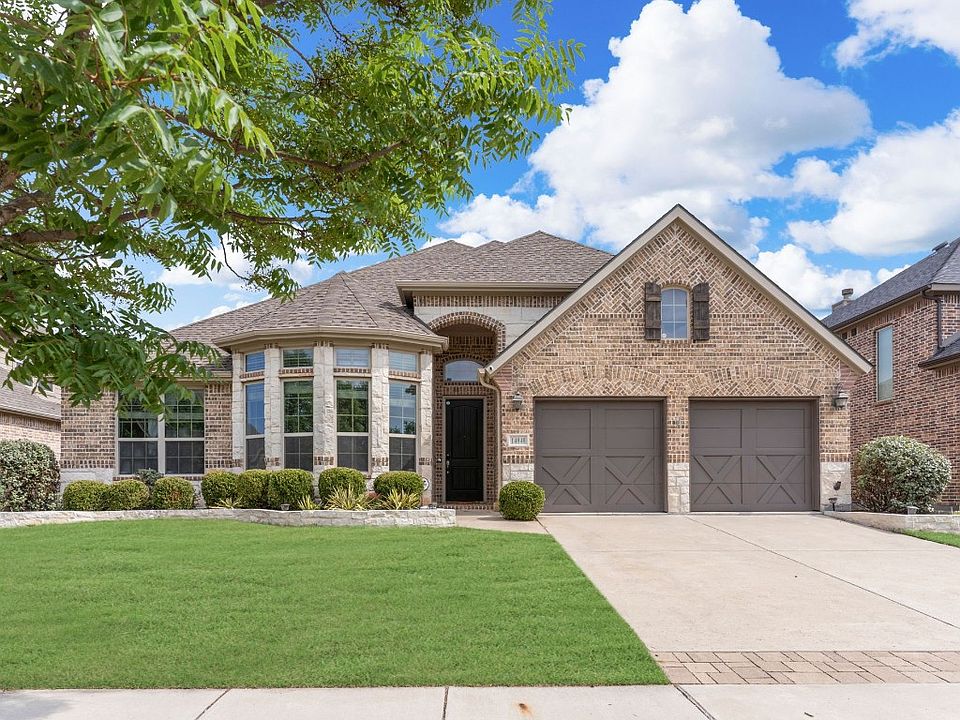 Back on Market, No fault to seller or home. Immaculate 1.5 story home beautifully appointed in the coveted neighborhood of the Arbors of Willow Bay. 3 Car Tandem garage! Perfect floor plan w the kitchen open to the living room w a handsome floor to ceiling stone fireplace. The kitchen has a large island with seating, SS appliances, gas cooktop, white quartz countertops, & farmhouse sink. The flooring has been upgraded with Luxury Vinyl Plank throughout the home. No carpet! Primary suite is private with master walk in closet leading to the utility room. Only room upstairs is a game room w a full bath. Lovely elevation of brick & stone with a bay window, & stone edged landscape beds. Backyard includes shed, large lawn & covered patio with gas stub out. Community has pool & zoned for the exemplary Frisco ISD. Upgrades include, Roof 2019, New AC Unit installed in 2022, LVP flooring, quartz countertops & Farmhouse sink 2021, Dual 50 Gallon Water Heaters.