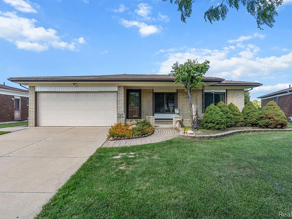 Don’t miss this beautifully maintained brick ranch located in a highly sought-after Sterling Heights neighborhood. Offering 3 bedrooms and 1.5 baths, this home features an inviting open floor plan with abundant natural light. The kitchen is complete with ceramic tile flooring, skylight windows, and appliances included. Luxury vinyl plank flooring flows throughout the living and family rooms, where you’ll also find a ceramic tile fireplace. The finished basement provides even more living space with ceramic tile flooring—perfect for a family room, home office, gym, or entertainment area. Additional highlights include recessed lighting, new windows, and a newer water heater. Step outside to a backyard that’s truly a farmer’s dream—featuring 3 apricot trees, 4 peach trees, an apple tree, a pear tree, and grapes along the fence. This outdoor space is perfect for gardening, harvesting your own fruit, or simply relaxing in a private setting. Located close to top-rated schools, shopping centers, dining, and major freeways, this home offers both comfort and convenience. Schedule your showing today before it’s gone! All measurements are approximate. Buyer’s agent to verify all information.