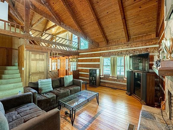Motivated seller. This is it! County living at its best! True log cabin with lots of open space! Living room and family room has a stone fireplace! It also has a large foyer with planters. Primary bedroom has an attached jetted tub and separate shower. The loft has a sitting area and office space. The basement has a finished entertainment room with attached bathroom that could be used as a second primary suite. There is an attached carport and detached garage with attached shed. Front yard is fenced. Come and see all it has to offer.