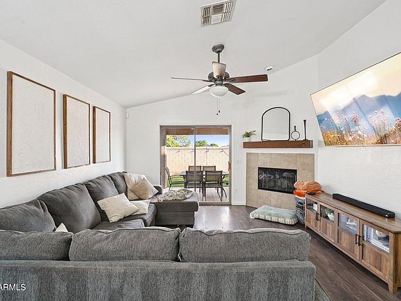 This charming and inviting home greets you with a warm, cozy living room that flows seamlessly into an open kitchen and family room, highlighted by a natural wood-burning fireplace. Featuring neutral paint tones this home is beautifully maintained and move-in ready. Enjoy entertaining outdoors on the extended patio complete with a built-in BBQ. The home offers 3 bedrooms, 2 bathrooms, and convenient inside laundry. Ideally located near Surprise Park, with a playground, dog park, and library, and within walking distance to Walmart, Trader Joe's, and local restaurants. Relax in the backyard with a perfect view. Excellent location and great value!