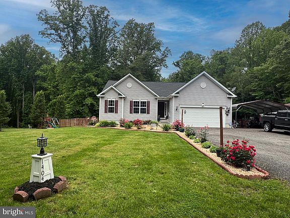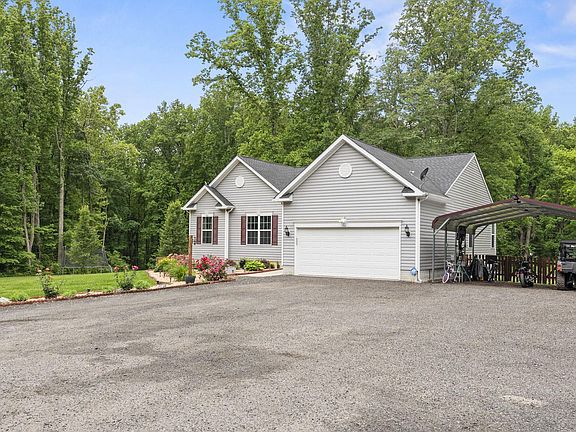 Welcome to your own slice of paradise nestled on over 5 acres of picturesque land, offering the perfect blend of tranquility and convenience! This exceptional property boasts a wealth of features designed to enhance your lifestyle, including a playground and trampoline, chicken coops, that convey, allowing you to embrace the joys of country living right at home. Conveniently located just 4 miles from Dahlgren NSWC base and minutes from the 301 bridge, with Fredericksburg less than 30 minutes away, this home offers easy access to city amenities while providing the peace and privacy of rural living. As you step onto the property, you'll be greeted by lush gardens and an open front yard, inviting you to explore and enjoy the beauty of nature all around. The heart of the home lies in the massive kitchen, featuring a center island that provides plenty of space for cooking, conversation, and entertaining. You have a spacious living room just off the kitchen, complete with views of the backyard and easy access to the dining area, you'll love spending time with family and friends in this inviting space. With a primary bedroom that is wheelchair accessible and features a custom closet design, as well as a luxurious primary bath with double vanity and gorgeous tile, comfort and elegance abound throughout the home. Plus, all new luxury vinyl plank flooring adds a touch of modern style to every room. 2 more great sized bedrooms upstairs that share a full sized bathroom in the hall. The separate laundry room, just off the garage entrance, offers ample space for storage, with a washer and dryer included for added convenience. Downstairs, the expansive rec room offers endless opportunities for entertainment, while the large bedroom and full bathroom provide comfort and convenience for guests. This bedroom is huge and offers a separate shower and a 1934 Clawfoot tub that is beautiful! Step outside to the huge concrete patio, perfect for enjoying the serene surroundings and hosting outdoor gatherings. Additional features of this remarkable home include a Culligan water system, massive parking space including a 2-car garage, carport, equipment garage, and lean-to, as well as a wired ADT system, Dish Satellite, and Breezeline internet available for added security and connectivity. Don't miss your chance to make this exceptional property your own. Schedule a showing today and experience the beauty and serenity of country living at its finest. Your dream home awaits!
