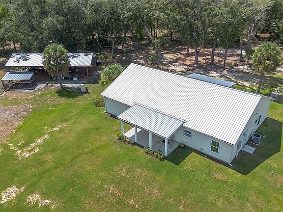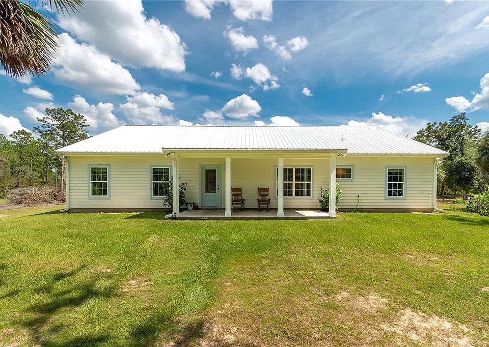 Imagine owning 12.25 secluded acres that border the Cross Florida Greenway, where wildlife abounds and nature thrives. Daily sightings of deer, turkey, and native birdlife make this private retreat one-of-a-kind. Soak in spacious and serene views from the front and back southern porches of this custom-built 2022 4BR/2BA home. Perfectly designed for rocking chairs, sweet tea, and peaceful evenings. Inside, a spacious living room opens to a gourmet kitchen with a large island, ideal for culinary enthusiasts and effortless entertaining. High ceilings and an open floor plan provide versatile space for bedrooms, a home office, or studio use. A 24×48 pole barn offers excellent room for equipment, storage, or future livestock. Recently cleared acreage is ready to be transformed into horse pasture, gardens, or additional recreation space. Perfectly positioned just west of the Ocala National Forest, this property combines seclusion with access to some of North Florida’s best outdoor adventures: hunting, fishing, paddling, and exploring natural springs, rivers, and lakes. You’re only 2.9 miles to Gores Landing on the Ocklawaha River, a short drive to major grocery stores, and just 18 miles to downtown Ocala. Whether your vision includes horses, hunting, farming, or a private retreat, this one-of-a-kind property that borders state land blends recreation, convenience, and peace — surrounded by Florida’s most treasured natural landscapes.