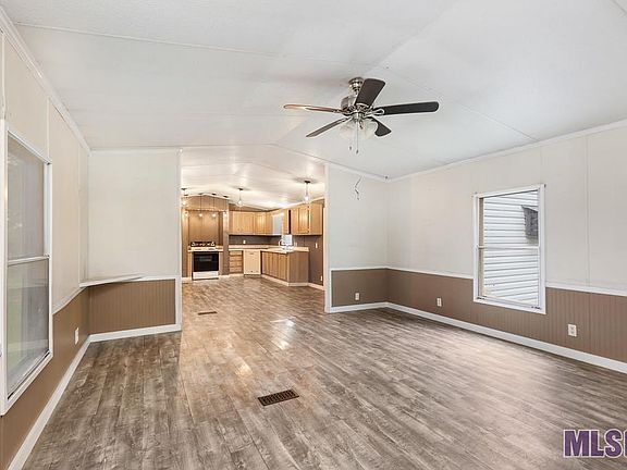 Embrace the freedom of country living on nearly an acre of land in the heart of Gonzales- with no HOA restrictions! This inviting 4 bed, 2 bath mobile home offers a generous open layout, highlighted by a beautiful kitchen with ample storage space. The primary bedroom is tucked away for privacy, with a tastefully remodeled ensuite bathroom, featuring a standalone soaking tub, separate shower, and double sink vanity. Other bedrooms are generously sized with the 4th bedroom off the breakfast area, providing a versatile bonus space for hanging out, studying or working from home. Step outside to the paved patio, where you can relax and enjoy the outdoors. With so much potential, this home is awaiting your personal touch to truly make it your own oasis!