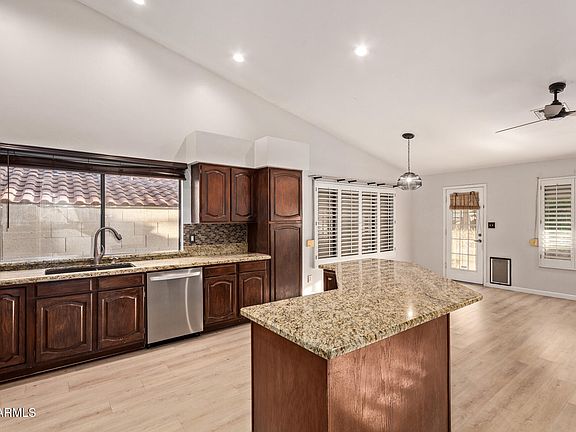 Welcome to this beautifully maintained home, perfectly situated in one of Ahwatukee's most sought-after neighborhoods. Just minutes from scenic hiking trails, top-rated schools, restaurants, and shopping. This amazing location truly stands out! Inside, pride of ownership shows throughout with fresh interior paint, professionally updated kitchen featuring granite countertops, and refinished cabinets throughout the home. Both bathrooms have been tastefully updated, and newer flooring runs seamlessly through every room of the home. Enjoy custom wood shutters, a cozy wood-burning fireplace, and peace of mind with a newer Trane A/C and Hayward pool system for the sparkling Pebble Tec pool. Take in mountain views and easy access to nearby Sun Ray Park right from your neighborhood!