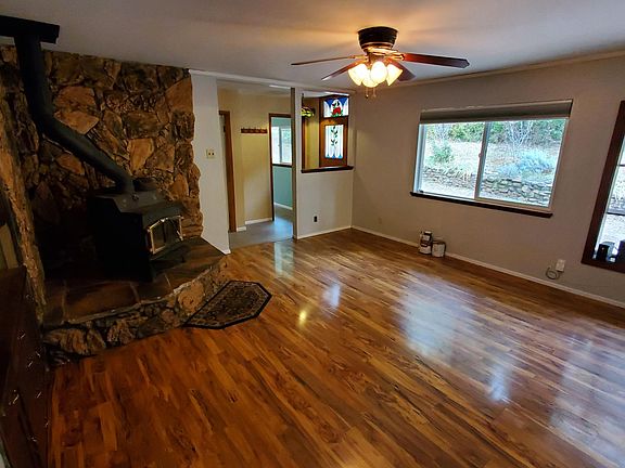 This adorable home in the Peardale neighborhood sits on 1 acre with a detached garage, basement, two fenced garden areas and 1 gigabit fiber internet available. A spacious master suite includes a sitting area with gas fireplace and a beautifully renovated Mexican-influenced master bath with large, deep bathtub. Look out the window into a meditation garden area with privacy fence. Second bedroom is small but light filled with a huge 4'x4' solar skylight to let the light in and a blackout blind for when you want to sleep in. Small bonus room makes the perfect office with an accent wall made from old redwood fencing. Living room includes a wood stove and beautiful built-ins, while the dining room features two more skylights and another propane stove to stay toasty. Kitchen includes granite countertops and a large walk-in pantry.