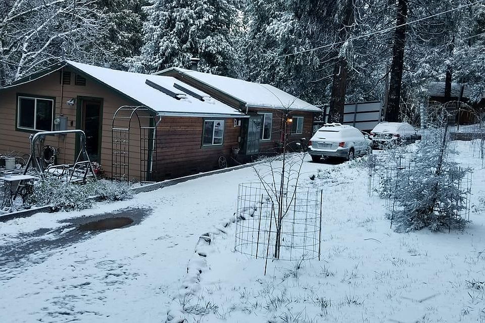 Outside the house, a fenced garden includes a greenhouse made of upcycled windows, raised beds as well as perennial boysenberry, strawberry, sage, and other herbs. Detached garage includes a workbench and shelving.