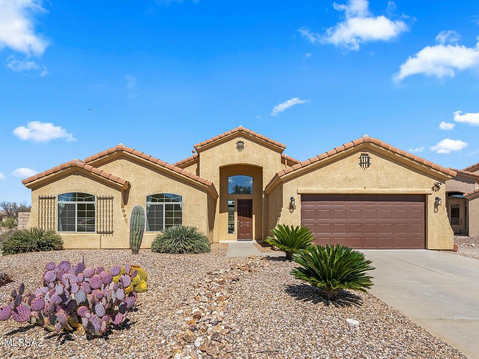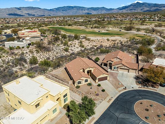 Immaculate Move In Ready 4bd/3ba 2242sq ft Home features 2 new A/C units installed 3/2024, Heated Pool, Tankless water heater, fresh paint, Double Ovens, Gas Cooktop, Large granite Island, and so much more! Pride of ownership shows from the moment you walk through the door and onto the Large covered patio. Once in the back yard you will appreciate the Wide Open Space behind and Beautiful Mountain Views. Try your green thumb in the Raised Garden Beds with drip system. Located on a quiet, private cul-de-sac in the highly Desirable gated Wing View subdivision of Rancho Del Lago in the Vail School District this one won't last long. Come make it your Home today.
