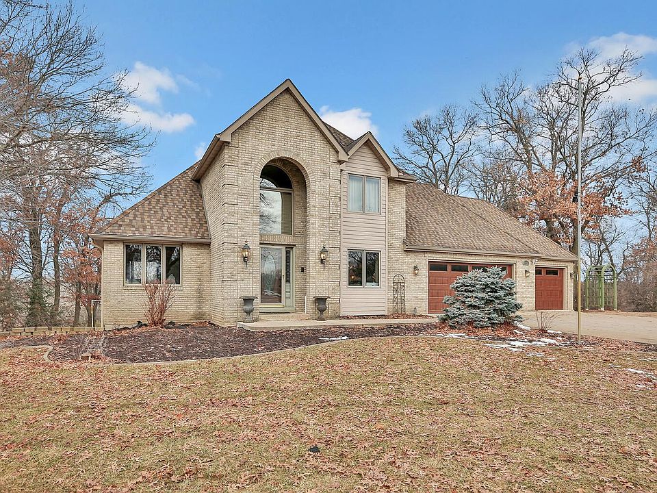 A true nature retreat on 6 acres! This stunning two-story residence has 4 bedrooms, 4 bathrooms, & 3681 finished square feet. The 6-acre lot has a park-like setting & a reflection pond which attracts lots of wildlife during summer & is a wonderful skating rink during winter! The kitchen features oak floors, double ovens, & elegant granite counters. An inviting 4-season sunroom with cedar siding overlooks the yard. Step outside from the dining area to discover the new composite maintenance-free deck. The walkout lower level offers a separate entrance & is very private. The kitchenette is equipped with an oven, sink, dishwasher, & microwave, making it an ideal space for guests, in-laws, or even as a potential rental opportunity. 2 gas fireplaces add a touch of warmth and charm to the living spaces. Lots of updates - freshly painted, new roof in 2018, new maintenance free decking, steel siding, new gutters, soffits, fascia. Pre-inspected & ready for its next chapter!