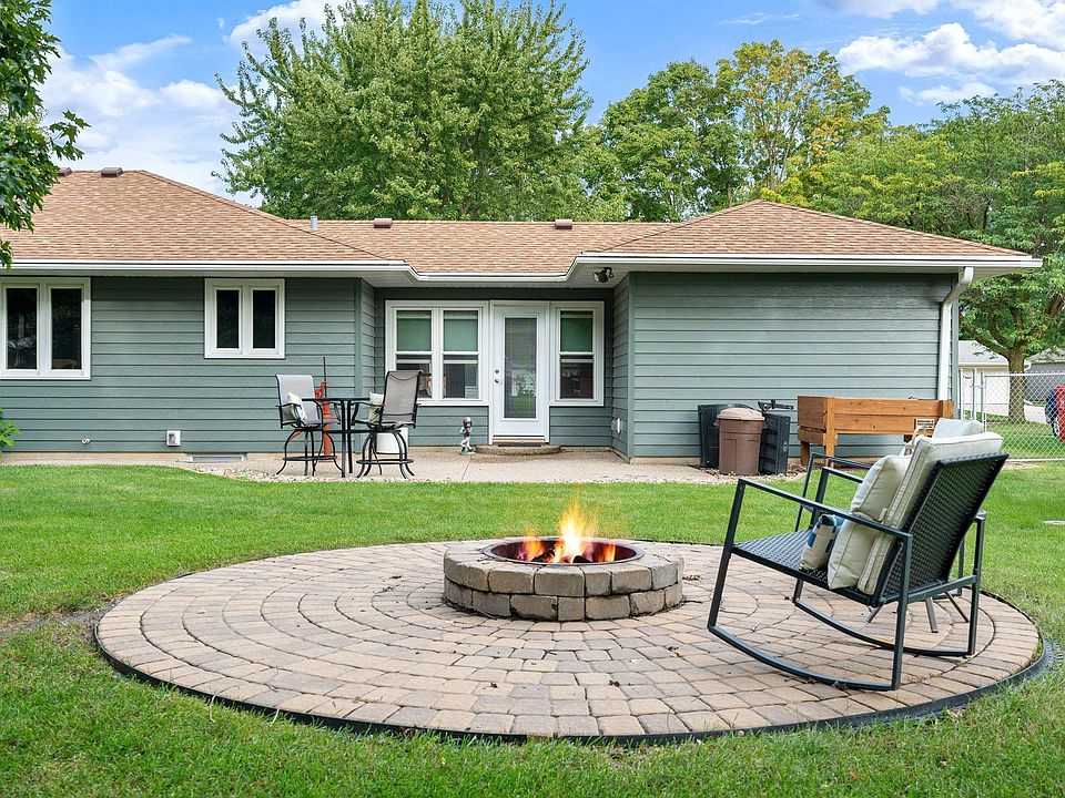 fire pit and an aggregate patio, ideal for outdoor gatherings and