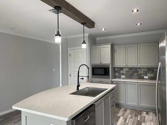 Oversize island kitchenHigh ceilingsCustom cabinetrySpacious primary suiteLuxury vinyl plank floorsNatural lightCrown moulding