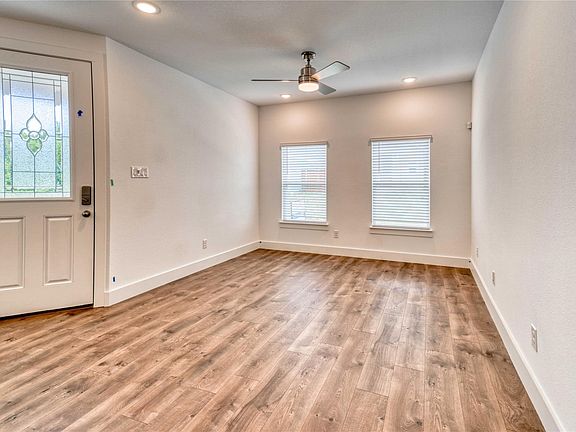 Welcome to this charming 3 bedroom, 2.5 bath Craftsman-style home, perfectly situated just minutes from downtown Gainesville, Gainesville High School, and I-35, and directly across from the NCTC campus offering convenience, comfort, and accessibility all in one. Thoughtfully designed for modern living, the open-concept floorplan flows seamlessly through the main living spaces. The spacious kitchen is equipped with granite countertops, stainless steel appliances, modern cabinetry, and a large pantry, making it ideal for everyday cooking and effortless entertaining. Upstairs, the primary suite offers a relaxing retreat featuring dual walk-in closets, dual vanities, a garden tub, and a separate walk in shower. Bedrooms 2 and 3 are generously sized and share a well appointed full bath, with Bedroom 2 including its own walk-in closet. A conveniently located upstairs utility room and nearby linen closet add extra storage and ease to daily routines. Step outside to enjoy your private, fenced backyard, while the HOA handles front yard maintenance, allowing for true low-maintenance living. Additional highlights include window blinds throughout and timeless Craftsman-inspired architectural details that enhance the home’s character and charm. This home offers the perfect blend of style, function, and location schedule your private tour today!