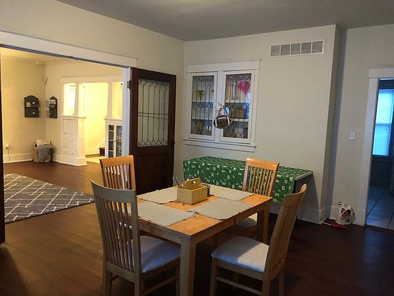 This two-story, 4 bed/2 bath house is located just one block from MU and was fully refurbished in 2010. Original hardwood floors are located throughout, and the house is equipped with newly installed energy-efficient windows, a brand new 90% energy-efficient heating and air conditioning unit, and washer and dryer hookups. The kitchen features new cabinets, a new dishwasher, and new tile floors. The main level has an eat-in kitchen, a spacious living room, and a formal dining room. Original French doors separate the living and dining rooms, giving the main floor an open, spacious feel. Off-street parking is provided behind the house.