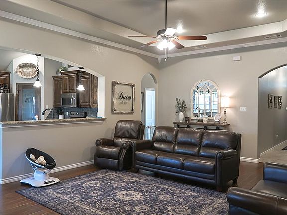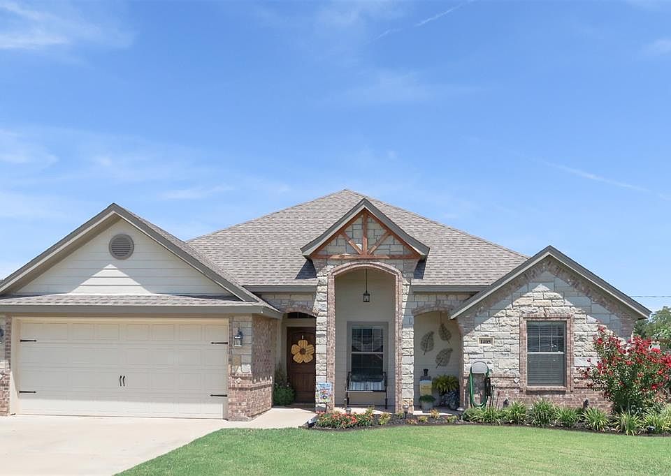 Immaculate & Inviting 4-2-2 rock and brick home built in 2015; Open concept kitchen, dining & living; Chef's dream kitchen with Granite countertops, tile backsplash, breakfast bar, island, electric range, built-in microwave, built-in dishwasher & pantry closet; Spacious den with rock WBFP, trey ceiling, recessed lighting & flat-screen TV wiring; Oversized master bedroom with sitting area; Master ensuite has a vanity with Granite countertop, dual sinks, garden tub, walk-in tile shower, walk-in closet & toilet; Secondary bedrooms share a hall bath offering a vanity with Granite counter, tub-shower combo & toilet; Cool covered patio with WBFP is perfect for entertaining or relaxing; Wood privacy fence & much more!