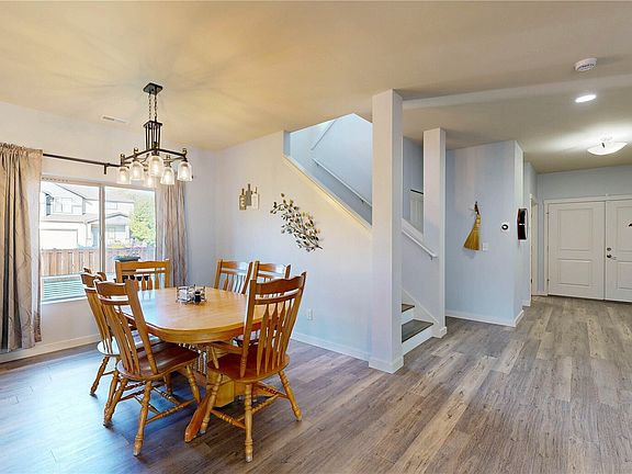 Life in Perkins Prairie, Buckley. This home is designed for space, comfort, and connection. The open-concept layout includes a gourmet kitchen with center island, quartz counters, ss appliances, & pantry, opening to the dining area & great room with cozy fireplace. Oversized bedrooms provide room for everyone. Double-door entry, LVP flooring through most of the home, and a bonus room with French doors add style and function. Upstairs, retreat to your private primary suite with sitting area, 5-piece bath, & walk-in closet. Enjoy a quiet setting across from wetlands, nearby Foothills Trail, and a covered deck. The fenced yard features raised garden beds, a 3-car garage with pass-through bay, storage, tasteful landscaping, & A/C. Welcome Home!