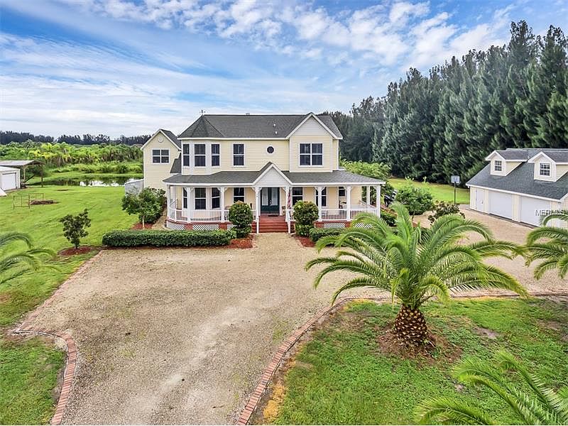 A real Southern Beauty, this picturesque Victorian style home has the charm of a real plantation! Situated on 3.06 acres of land and surrounded by Canary Island Palm trees, this home is zoned as a nursery with residence, which lends itself to the uniqueness of this property. Note: Property on left and right of driveway entrance before the partial wall that currently has palm tress on both sides does not convey. Up to 4 Homes can be built on both sides. Extended driveway entrance leading up to home with a wrap around porch that allows for a front row seat to the rockets that go off at KSC which is just a stone's throw away! Although it is listed as a 4 bedroom, 3 bath home, there is the potential for 2 additional bedrooms, plus there's an apartment garage upstairs from the detached 2 car oversized garage. Once used as a bedroom, this could be perfect for a guest house too! For the gourmet chef in you, the custom kitchen will both surprise and delight with a commercial grade 6 burner gas stove and griddle with 2 ovens, a pot sink, microwave/convection oven, commercial grade True refrigerator and a separate freezer. Ultimate dressing room off master consists of a custom built walk-in closet with granite vanity and sink! Custom spiral staircase leads to owner's retreat. Currently used as an office, can be another bedroom- has a Separate European "state of the art" a/c. Separate 24 X 34 Metal Building . Garage Apt has no heat but a/c Please see attachment for additional features that add to this home.