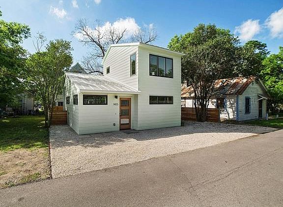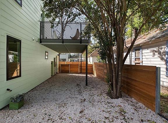 Gorgeous, modern, new build home in the heart of downtown east Austin! This unique, site-specific, architectural design features a flexible 2 story layout with one bedroom on each floor. Inside find bright airy living spaces with vaulted ceilings and designer touches including sustainable European wood flooring. Multiple outdoor spaces including a large second-floor deck, screen porch, and private shady yard with mature trees and low maintenance landscape.Walking distance to the UT campus & UT med school