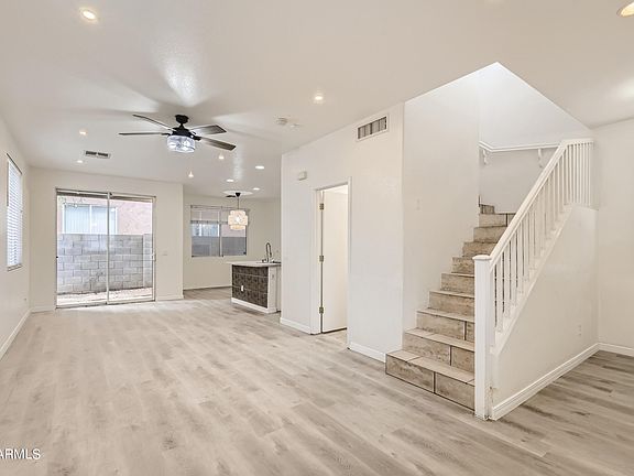 NEW FLOORS MAIN LEVEL Located conveniently to I-10 and South Mountain Park. Step inside and be impressed with the flowing floor plan and spacious rooms. Open kitchen with a large central island, tile floors, a sunny dining area, and the bedrooms are located upstairs for privacy. When arriving on the second floor, you will find large bedrooms, a bonus loft space that could be a great home office, and a primary suite complete with en-suite bathroom & walk-in closet. The backyard offers space to relax with the covered patio and a private fenced in area. Upgrades include: full owned solar panels keeping electrical bills super low, reverse osmosis water softener system, tile flooring throughout, new roof 2018 & new water heater 2020. Welcome home! Click the Virtual Tour to view the 3D tour.