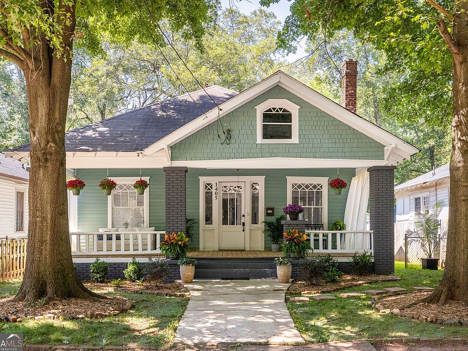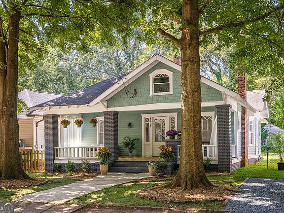 A century ago, this Country Victorian was built in Capitol View, a neighborhood once connected to Downtown Atlanta by a trolley line starting at Dill Avenue. The streets here were designed to be gracious and welcoming-tree-lined boulevards with deep front yards and homes set proudly back from the road. Today, 1405 Graham still sits on that same leafy street. Where trolleys once carried neighbors into the city, the Atlanta BeltLine now serves as your pathway-whether by foot, bike, or scooter-echoing the way streetcars linked these communities a hundred years ago. Arrive however you like, and you'll be greeted by two time-honored oak trees and a front porch that spans the full length of the home, setting the stage for the character within. Step inside through the front door framed by diamond-pane windows, and you're welcomed into a true Country Victorian. Inside, original built-ins anchor a coal-burning fireplace, surrounded by soaring ceilings and hardwood floors. The dining room features a canted bay window with matching diamond detail, flooding the space with natural light and highlighting a second original fireplace. The bright kitchen offers solid stone counters, a breakfast bar, and sleek white shaker cabinetry-modern function that pairs seamlessly with historic charm. The primary suite enjoys abundant natural light and a private bath, while the secondary bedroom captures the third original fireplace and connects easily to a renovated hall bath. Out back, the yard is oversized and full of potential, ready for play, gardens, or gatherings. Beyond your own grounds, you're just minutes from the Lee + White development, home to Monday Night Brewing, Wild Heaven, and an eclectic food hall. The nearest BeltLine access is only blocks away, and Graham Avenue dead-ends into Perkerson Park-50 acres of green space with tennis courts, ball fields, and Atlanta's number one rated disc golf course (udisc.com). 1405 Graham is more than a home-it's a piece of Capitol View history, updated for today's lifestyle, every detailed considered including a roof replaced just 5 years ago but still rooted in the neighborhood's century-old story. Capitol View is listed on The National Register of Historic Places.