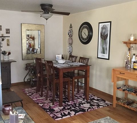 Great home in a great location close to schools. Beautiful landscaping and an inviting front porch lead into the entry way with a nice coat closet. The open living room leads to the dining room which is open to the very workable kitchen. The first floor is completed with a nice sized bathroom and an office with built in desk and cabinets. The second floor consists of three nice sized bedrooms with great closet space in all, and a convenient half bathroom. The basement is clean and dry, with built in shelves for storage and egress windows. A new roof, water heater and some carpet are the updates completed in 2017. All windows are newer and the furnace is high efficiency. The back yard is completed fenced for convenience and privacy. A great feature for pets! A two car garage is located off the alley with cabinets for storage.