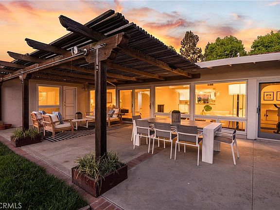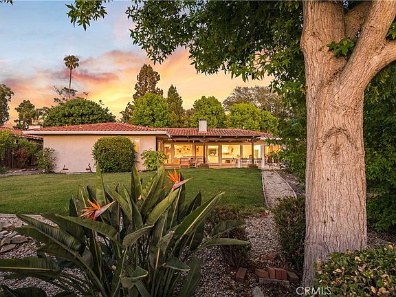 Set back off the street, this amazing one-level home features a large living room, as well as a spacious family room, both with fireplaces, and both leading to the huge, grassy backyard. The conveniently located kitchen includes a center island and a cozy breakfast nook. Four spacious bedrooms (one currently used as an office) plus a separate exercise room help create an ideal floor plan with the always desirable indoor / outdoor flow. Speaking of the outdoors, the large front yard features a long driveway leading to the attached two-car garage. The huge grassy backyard also enjoys an expansive patio with trellis, which is perfect for dining or relaxing outdoors. There's even a peek-a-boo view! Centrally located, close to schools and shopping, this one’s a winner!