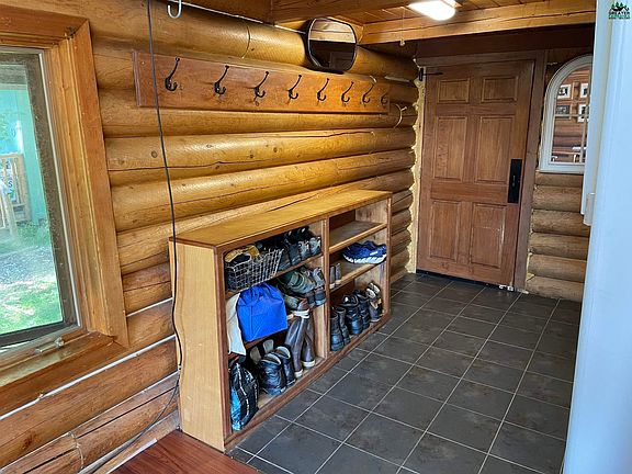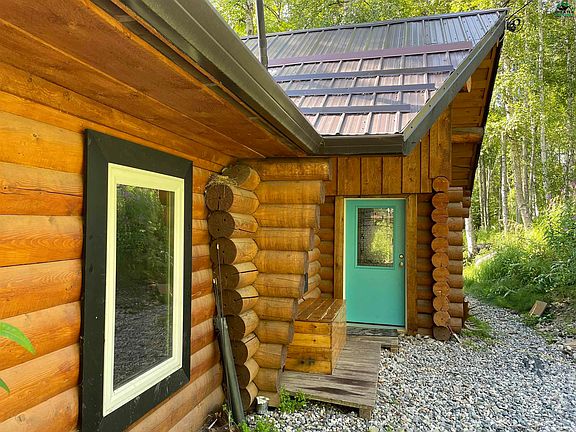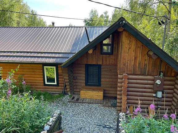 All the best things in the charming log home with acres of land and a beautiful manicured yard. You'll love this outdoor space with so many fun features including a fire pit, a garden area, lush beautiful lawn, chicken coops AND a shed that could easily be converted to a fun hideaway. There is also a oversized 1 car garage from him. The home itself is adorable. Large logs, vaulted ceilings, windows overlooking the yard and view so much more. There is a bonus loft area off the living room. The bathroom has been remodeled with a jetted tub and home has a bonus arctic entry area. Kitchen has plenty of space and features stainless steel appliances. Cozy home with lots to offer.