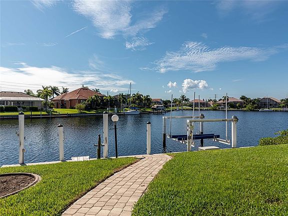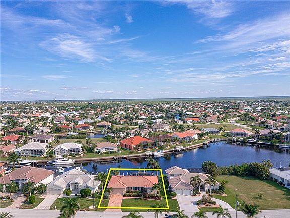 SAILBOAT ACCESS, WATERFRONT HOME W/WIDE CANAL BASIN VIEW. Beautifully-updated, 3 bed/2 bath, waterfront home in Punta Gorda Isles offers quick sailboat access via Buckley's Pass. Give your boat a backyard to love! Inside, the home features a great room design w/formal living room, updated kitchen & baths. Architectural details include cathedral ceilings in the great room, tile flooring throughout, 3 skylights, pool and/or canal views from almost every room plus lots of natural light thanks to large picture windows and/or sliding glass doors in every room. The kitchen features granite counters, wood cabinetry, stainless steel GE Profile appliances including convection oven & microwave. Eat-in kitchen features a breakfast nook overlooks the lanai plus offers a pass-through window to the lanai for easy entertaining. The master suite has walk-out access to the lanai, two walk-in closets & a spa-like master bath w/designer fixtures, tiled shower (w/new shower door in 2021), solid surface vanity, separate tub & access to the outdoor orchid room/private terrace. The split bedroom floor plan boasts large guest rooms that share a guest bath. Guest bath doubles as a pool bath w/access to the lanai. Outside, the lanai features a brick paver deck surrounding the in-ground, heated pool (heat pump replaced in 2019). Relax in the shade or soak of some Florida sun poolside while overlooking your private dock. The extended concrete dock w/new, remote-controlled, 12,000 lb boat lift is steps from the back door. Water & electric (2 30-amp & 1 20-amp) hook-ups are available dockside. Keep your boat docked directly behind your home. In preparation for the sale, homeowners had roof inspection completed that resulted in a new skylight being installed, new vent pipe, cracked tiles replaced & caulking resealed as needed. Other updates include new water heater in 2021. Other amenities include an attached two car garage w/new epoxy floor, stamped concrete driveway, hurricane protection (roll-down Kevlar screens on lanai & panels) & well-maintained tropical landscaping.