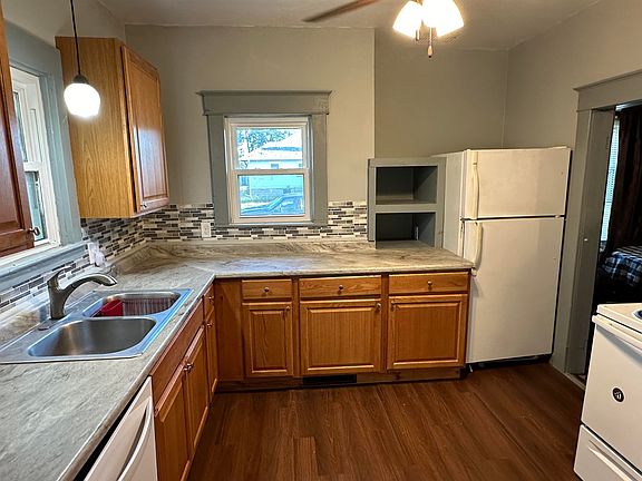 Lockbox on East Door. Large corner lot. Updated Vinyl Siding. Newer Windows on the Main Floor. Kitchen has been remodeled & has Small Pantry. Washer and Dryer are Included. Alley Access with Parking Pad from Prior Garage. Needs some TLC but the Potential is there!