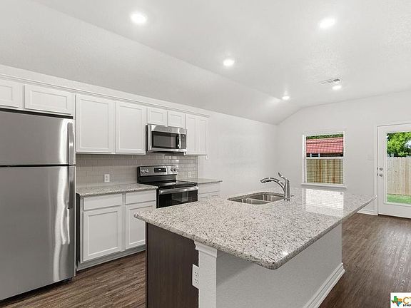 3 years old. No pets, No smoker,No late rent payment, no evection . Income 3 times rent after car payments.! stone and brick exterior, fully fenced backyard. The Interior feature wood vinyl flooring through out, trendy two tone painted cabinets (white and dark stain) , Large island, Pantry, complete stainless steel appliance package and Granite counters in the kitchen. The main bedroom features a very large walk in closet, shower only with decorative tiles, and great size vanity. This is a split floor-plan with two more bedrooms on the other side of the home with full bathroom in between. Stackable washer & dryers, Garage door opener & a refrigerator are also included. CLOSE to downtown Killeen. easy access to Fort Hood street entrance and airfield entrance. Elementary school close by.