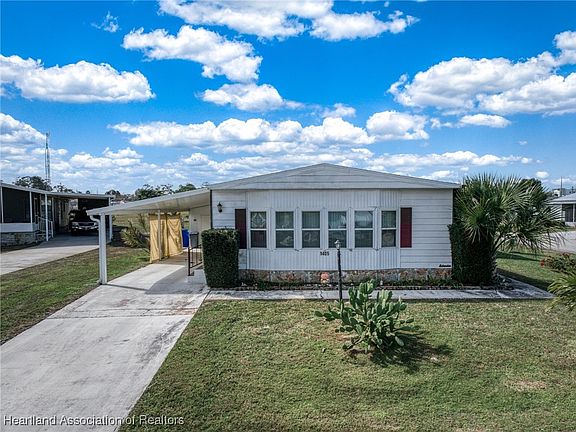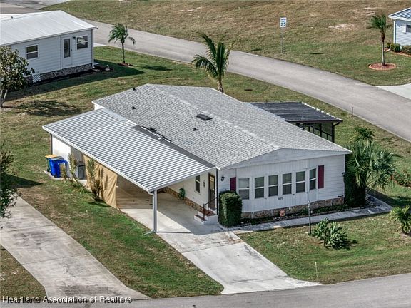 Welcome to this move-in ready mobile home on owned land (NO LOT RENT!) located in Colony Pointe 55+ Mobile Estates of Sebring, FL! As soon as you arrive at the driveway, the well maintained appearance of the home and landscaping on a larger corner lot will be sure to pleasantly greet you! Impressively spacious Mobile Home on Owned Land - 2 bedrooms offering generous amounts of closet space, 2 full bathrooms, nicely appointed central kitchen adjacent to the designated dining area offering built-in cabinetry, PLUS a wonderful 12'x14' screened-in porch perfect for entertaining guests during the cooler months! The main central living areas are bright and open with high vaulted ceiling and carpet flooring present. The 11'x13' kitchen has plenty of cabinets and counter space PLUS a central island breakfast bar! The spacious Master suite offers a generously sized walk-in closet and ensuite bathroom with BOTH a separate shower and soak tub! The exterior 8'x10' workshop/shed is conveniently located on the side of the home under the carport roof to allow for supplemental covered storage, the washer & dryer is located inside the home in its own utility room providing for easier laundry days. NEW ROOF 2023, new windows in 2015, HVAC system new in 2021, and the irrigation well pump new in 2022. Slightly less than 1/4 acre of YOUR OWN LAND on an attractive corner location - NO LOT RENT! The $120/month HOA Fee charged to the residents of this neighborhood covers and provides access to all of the community's amenities including a large community heated pool, exercise room, game room, community center kitchen, shuffleboard courts, and a gated parking area for your RVs and boats! To be sold AS IS, FULLY FURNISHED.