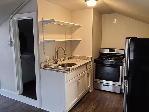 Available now, this one bedroom unit has a full kitchen with granite counters, refrigerator, Oven, sink, and microwave. The unit has wood floors, assigned off street parking. For an additional $125 per month electric, gas, garbage, and water are included (not optional.) All units are no smoking and no pets.