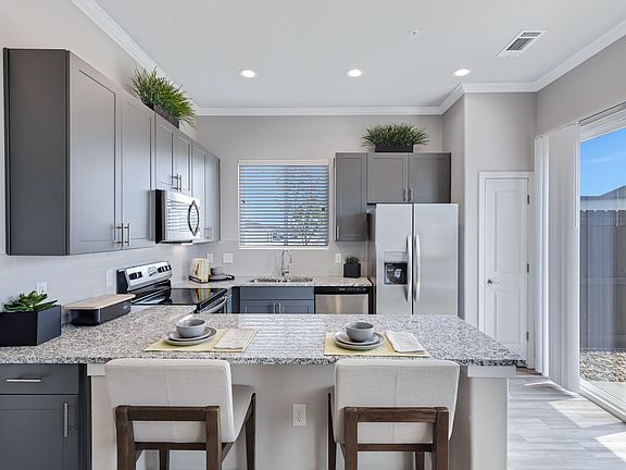 - Exterior features: 24/7 Emergency Maintenance, Artificial Turf, Barbecue, Concierge, Fire Pit, Flexible Rent Pay Options, Front Porch/Private Entrance, Granite Countertops, Guest Parking Solutions, High Ceilings, On-Site Management, Open Floor Plans, Outdoor Green/Open Areas, Pet Park, Pet-Friendly - No Breed or Size Restrictions, Private Backyard, Smart Home Technology, Stainless Steel Appliances, TV Lounge, Walking Paths, Wood Plank Style Flooring Throughout