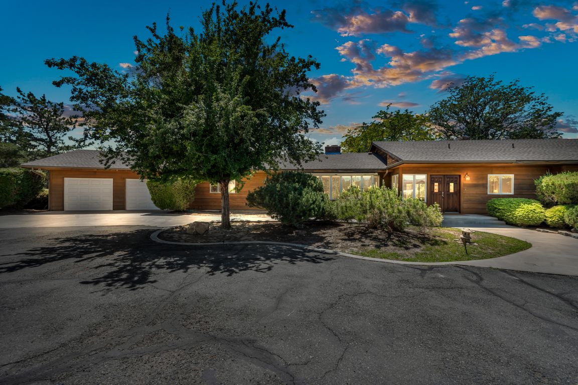 Single-story homeZoned for horsesStunning mountain viewsGated retreatWet barCovered patioTranquil back patio