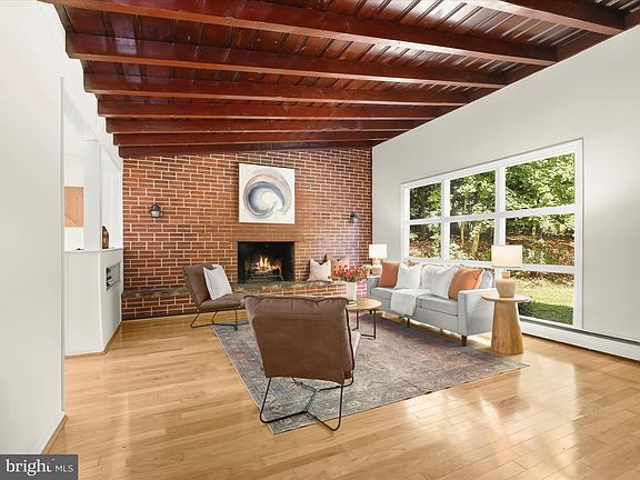 Welcome to the sought-after Oak Crest community of Catonsville, where timeless charm meets modern comfort. This captivating, private Mid-Century Modern Ranch/Rambler-style home invites you in with an airy open-concept living area, soaring vaulted ceilings, rustic exposed beams, a cozy wood-burning fireplace with a classic brick surround, a sunlit picture window, and gleaming hardwood floors. The dining room continues the warmth with hardwood accents, a charming built-in bookcase, and French doors opening to a secluded patio, perfect for quiet morning coffee or vibrant evening gatherings. The stylish kitchen is a chef’s delight, boasting butcher block counters, 42” cabinetry, a dedicated prep area, and sleek modern appliances. The spacious primary bedroom offers plush carpet underfoot, three closets, including a generous walk-in, and the unique opportunity to design your own custom en-suite using the remaining closet space. Two additional bedrooms provide flexibility, one featuring plush carpet, built-in bookcases, and a soft neutral palette, and the other ideal for a home office, library, or cozy den. The expansive lower level is ready for fun and function, complete with a large family room, a bar area, open shelving, and plenty of room for media and game zones. A workshop, one-car garage, versatile flex space, laundry area, and abundant storage ensure every need is met. Set on three lots, one buildable, this property offers outdoor living as impressive as the indoors. Enjoy a hidden/secret garden retreat, the peaceful sounds of a gentle creek, and the privacy of a lush natural backdrop. All this, just minutes from major commuter routes (I-70, US-40, I-695), Catonsville Community Park, and the shopping, dining, and entertainment of downtown Baltimore. Experience the perfect blend of nature, convenience, and character. Your Oak Crest dream home awaits! Updates: Oil Tank(2022), Mini-Splits, Roof (2023)