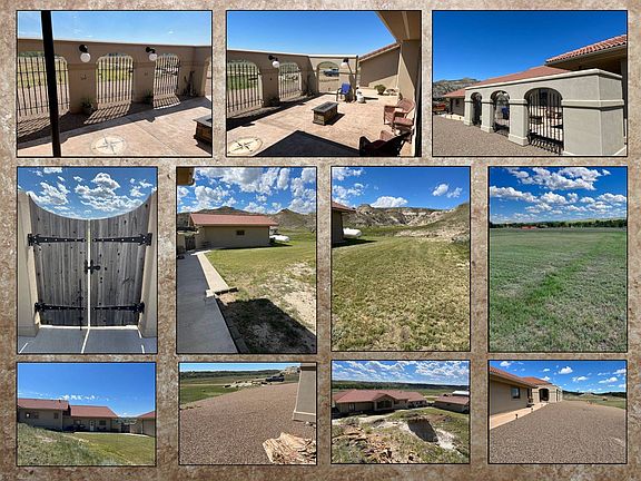 Sitting on 9.54+/- acres this custom built beautiful home with insulated cement walls , 2 bedrooms and 2.5 bathrooms, with vaulted ceilings, heated floors, in home and attached garage. Home also showcases some custom iron work, tile flooring throughout with stucco siding, clay tile roofing and a pond. Featuring a cement patio with a privacy wall on the South side, with views of the Milk River valley and cottonwood trees. Privacy fence and grass yard on the Northside, viewing the beautiful landscape of the Badlands. Property has a 40 x 60 shop with a gun room and shooting range, (featured on second brochure) vented paint room. So many amenities to see! (About the 40 x 60 shop) This shop is what dreams are made of, sitting on approximately 5.82+/- acres giving plenty of room to build a home. Shop has steel roof, Masonite siding, 14ft overhead garage door, in floor heat (never been used), overhead gas heater, hot water tank, sump, and shared well. This shop has a gun room, office, bathroom, paint room / wash bay with curtains, overhead crane, and an in floor hydraulic lift. Property has its very own shooting range out back with shooting bench. Shop has 16 ft walls consisting of 8ft cement topped with 2x6's and landscaped, with dirt fill making this amazing shop energy efficient.