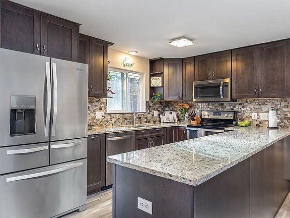 One block from river and trail and in a beautiful and private location. Fully insulated and heated shop 30X40 sq ft. with full bathroom would be great for a in-home business. Huge swimming pool with weekly chemical maintenance included. 4 bedroom 2 bath house has been recently renovated with 2 car garage. Large oversized living room with vaulted ceilings, dining room off kitchen, family room and one bedroom/bath on lower level. Laundry room includes washer and dryer. Extensive solar system reduces power bill to almost zero for majority of the year. Large private yard with lawn maintenance included. No smoking allowed inside or outside the property. Well behaved and trained pets are welcome. Background and credit check for each tenant over 18 years old.