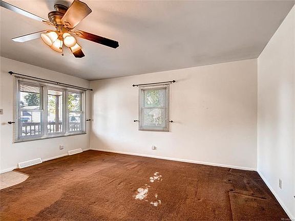 This ranch home is located in a Quiet Southwest Denver Neighborhood. It is situated on a large corner lot that faces east. The main level features a large living area, a spacious kitchen with lots of cabinets for storage, two bedrooms and one full bath. (The main level has hardwood flooring under the carpet.) The home has newer windows throughout. The basement is finished with a large family/game room, two non-conforming bedrooms, one large full bath. There is also a large laundry/utility/workroom located in the basement. The back yard has two storage sheds, a large concrete patio for BBQ and entertaining. This home is ready to move in.. Great location with easy commute through out the Denver area, near public transit, shopping and two blocks from a beautiful park. Perfect home for a family or a first time buyer.