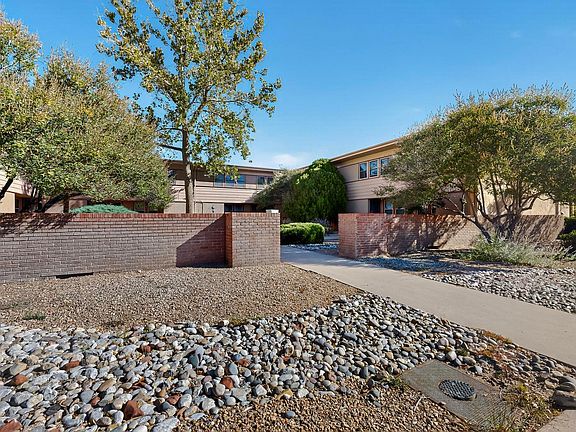 Beautiful condo close to Albuquerque Country club! This property has gorgeous old school charm. A wood accent wall in the living room, with a wood beam accent separating the living room and dining room. Hard wood floors throughout the entire condo. Generously sized master bedroom and secondary bedroom. Two step-in closets in the master bedroom. Stackable W/D in the kitchen. This unit boasts lots of light throughout for plenty of natural lighting! Storage space closet attached to the carport space. HOA covers sewage, water, trash, outdoor maintenance, landscaping, and winterizing/summarizing the swamp cooler. Property management company oversees the HOA. Stucco newly repainted and newer roof 2024. Make an appointment today.